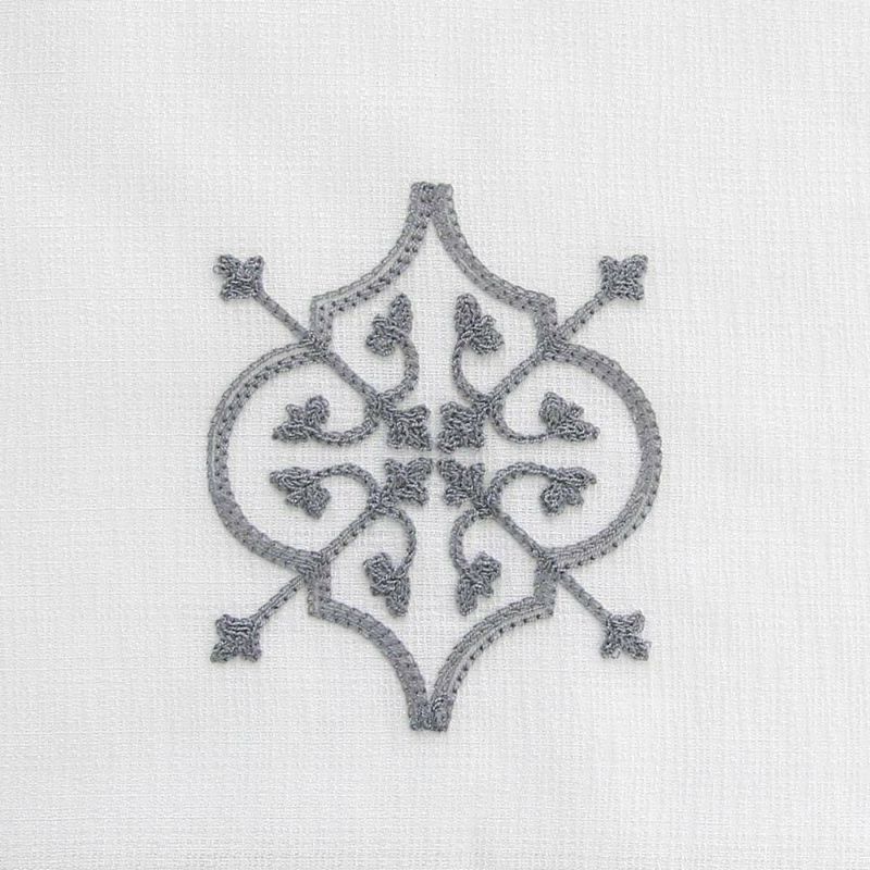 イスラムタイルからインスピレーションを受けたモチーフを、立体感のあるシェニール刺繍という技法で表現しました。浮き出てくるようなモロッカン刺繍は、見るたびにときめきをくれます♪