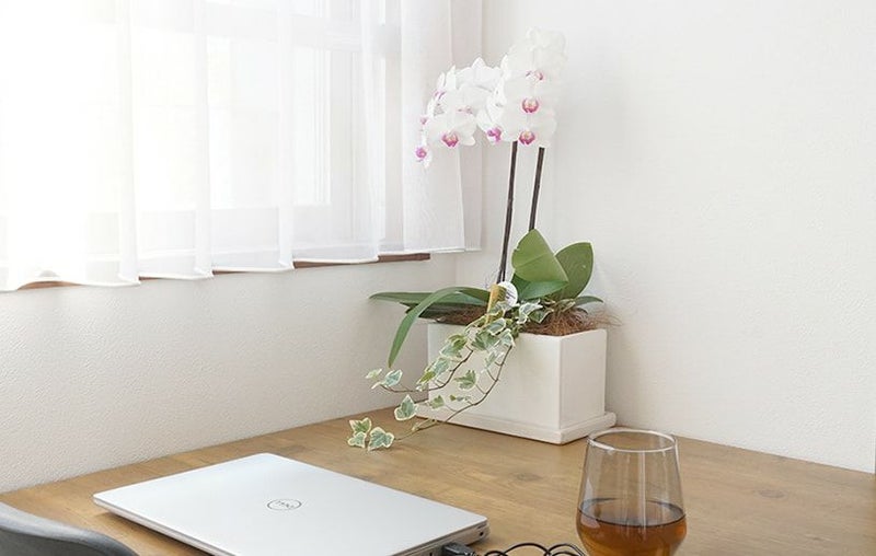 作業中の癒しにもなる観葉植物と胡蝶蘭。リラックスできます◎