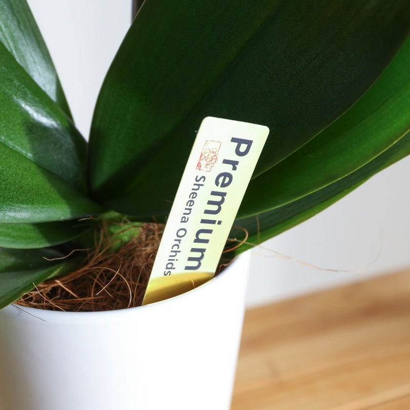 国内外からも高い評価を受ける、「椎名洋ラン園」栽培の胡蝶蘭。生産者が特別に厳選した商品にのみ記載することのできる「Premium」ラベルをお付けしています。最高品質の証が光るこの胡蝶蘭は、大切な人への贈り物にも最適です。