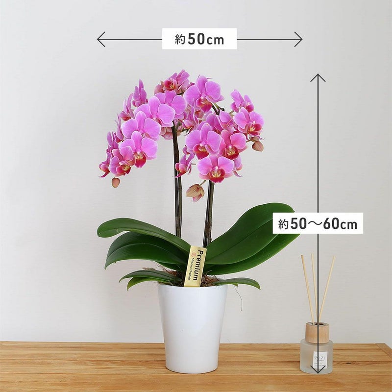 国内外からも高い評価を受ける、「椎名洋ラン園」栽培の胡蝶蘭。生産者が特別に厳選した商品にのみ記載することのできる「Premium」ラベルをお付けしています。最高品質の証が光るこの胡蝶蘭は、大切な人への贈り物にも最適です。