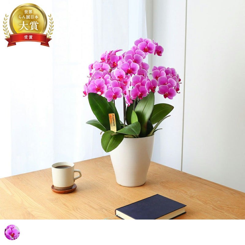 国内外からも高い評価を受ける、「椎名洋ラン園」栽培の胡蝶蘭。生産者が特別に厳選した商品にのみ記載することのできる「Premium」ラベルをお付けしています。最高品質の証が光るこの胡蝶蘭は、大切な人への贈り物にも最適です。
