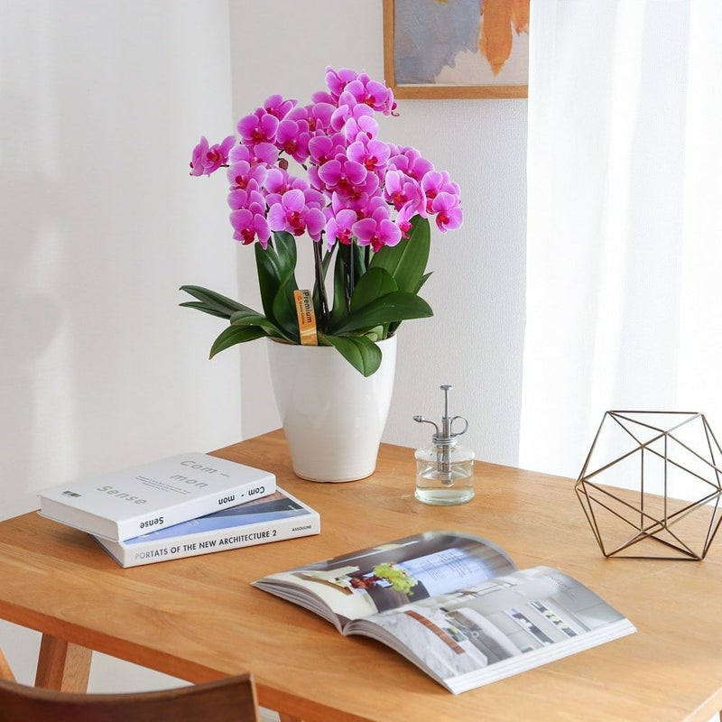 いつもの場所に胡蝶蘭を添えるだけで、気持ちがふんわりと華やぐ空間へ。生きたお花は部屋に瑞々しさをプラスし、あなたに癒しと活力を届けてくれます。また、見ていて飽きない凛とした花姿も、胡蝶蘭だからこそのチャームポイント。思わず笑顔も咲かせるような、心くすぐるお花をテーブルのアクセントに。