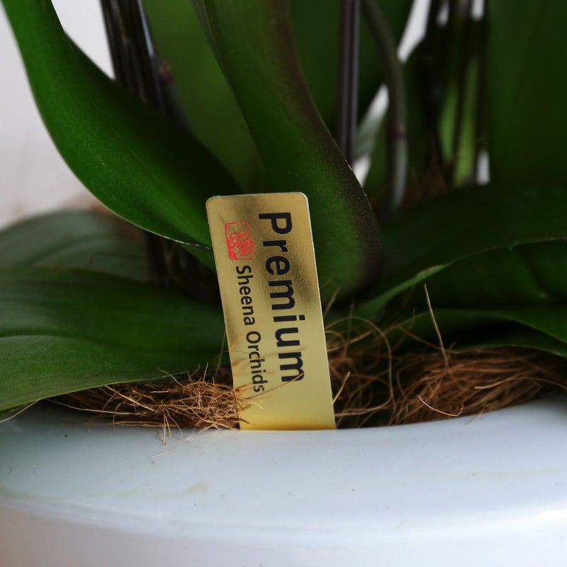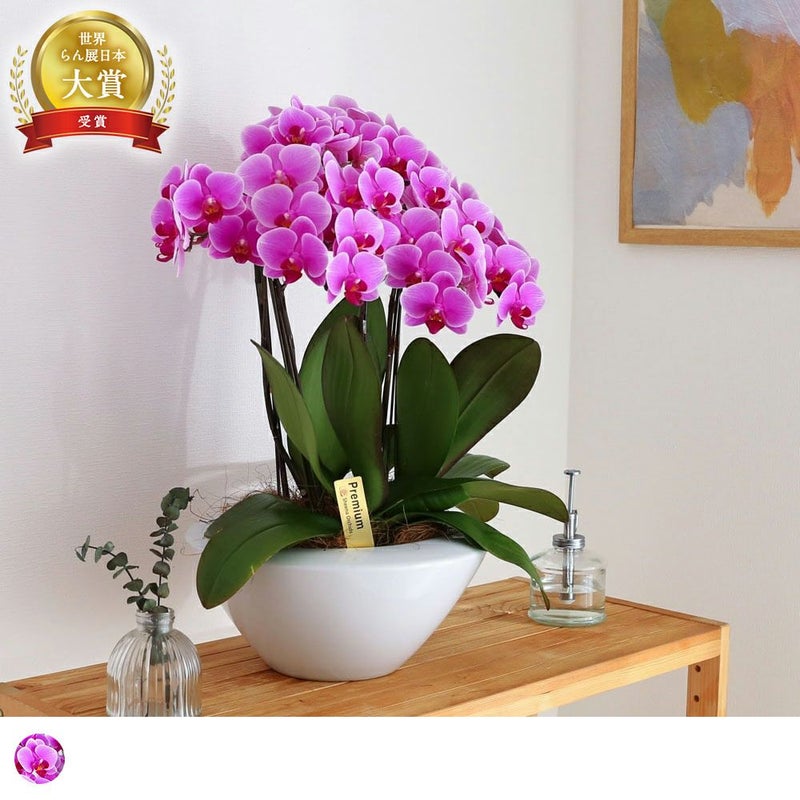 国内外からも高い評価を受ける、「椎名洋ラン園」栽培の胡蝶蘭。生産者が特別に厳選した商品にのみ記載することのできる「Premium」ラベルをお付けしています。最高品質の証が光るこの胡蝶蘭は、大切な人への贈り物にも最適です。