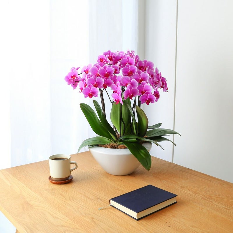 いつもの場所に胡蝶蘭を添えるだけで、気持ちがふんわりと華やぐ空間へ。生きたお花は部屋に瑞々しさをプラスし、あなたに癒しと活力を届けてくれます。また、見ていて飽きない凛とした花姿も、胡蝶蘭だからこそのチャームポイント。思わず笑顔も咲かせるような、心くすぐるお花をテーブルのアクセントに。