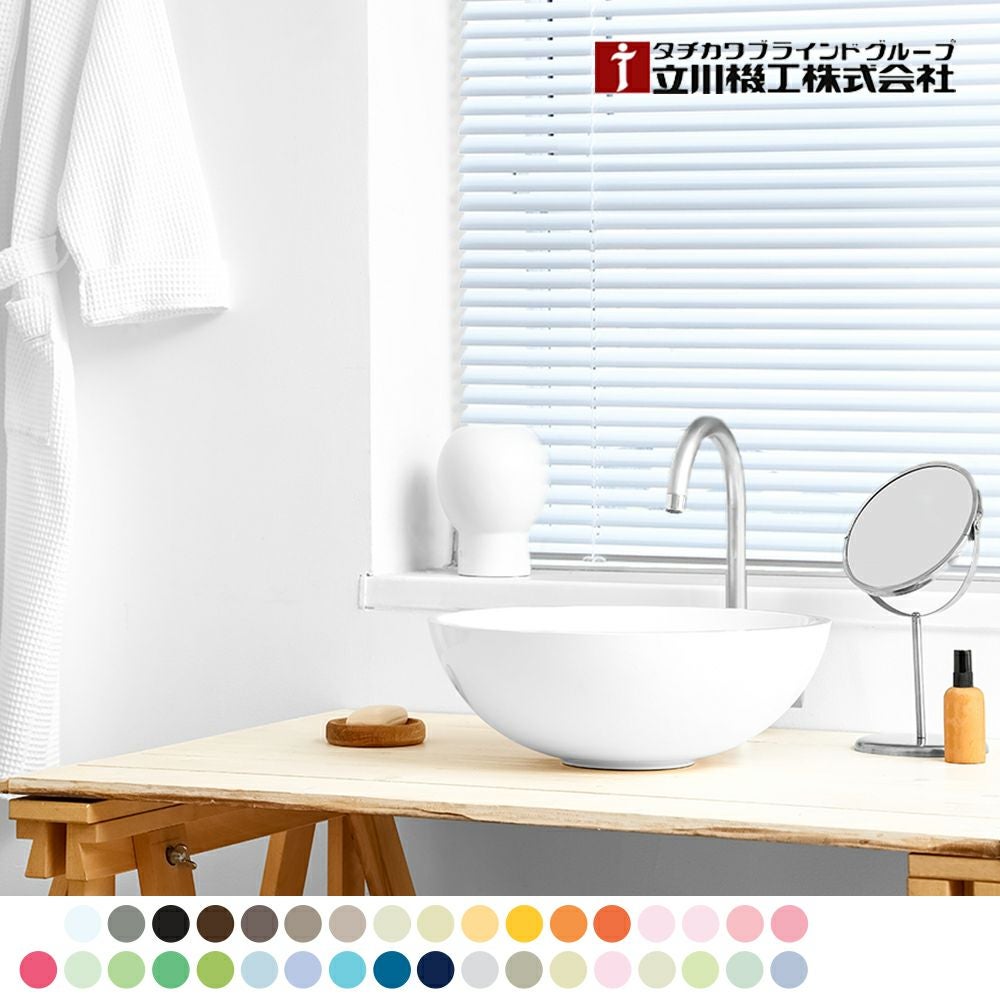 耐水加工でないものであっても、アルミの特性上水をはじいてくれますが、耐水加工タイプだとブラインドの上部やヘッドボックスの中など細かい部分まで耐水加工が施されているため、水回りやお風呂場への設置を考えている方は、耐水タイプの購入をおすすめします。