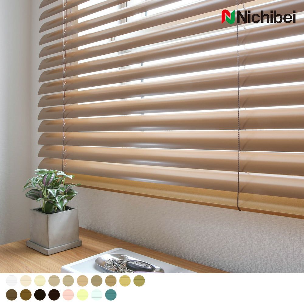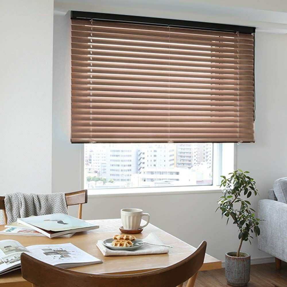 アルミブラインドについて、少し安っぽい、またはかっちりとしたオフィスっぽいイメージをお持ちかもしれませんが、当店では多種多様なアルミブラインドをご用意しております。木目調のものやスラット幅の広いものなど、従来のアルミブラインドのイメージが覆るような製品を多数取り揃えております。モダンなイメージのものもございますので、お部屋の雰囲気に合わせて選んでいただくことが可能です。