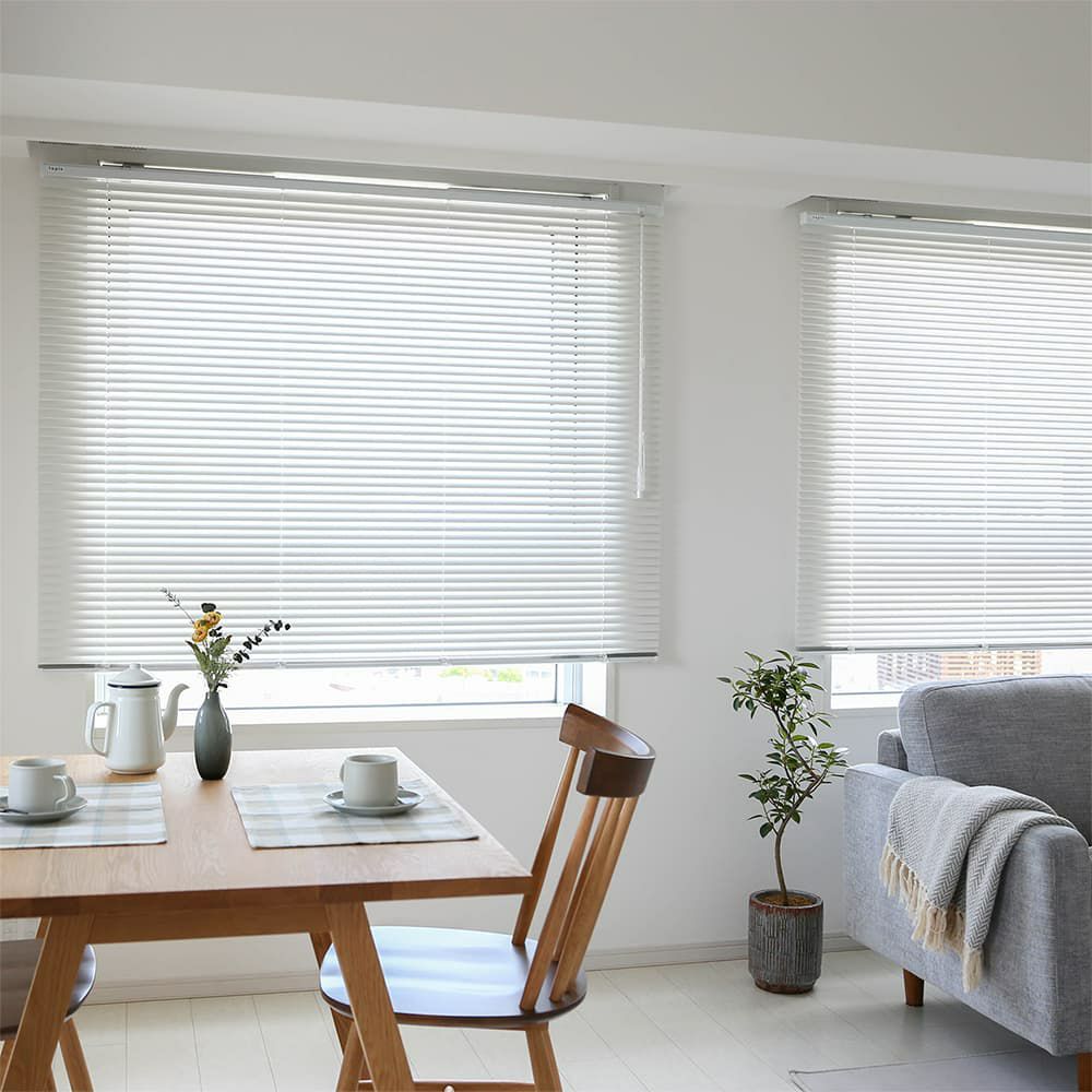 アルミブラインドは、ブラインドの中でも比較的軽いため、開け閉めの際もご安心ください。大きな窓に取り付けたい場合は、より利便性を高めるために2つに分割して取り付ける方法もおすすめです。
