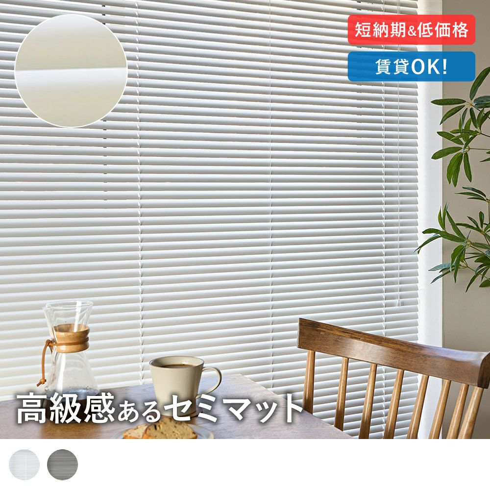 アルミブラインドについて、少し安っぽい、またはかっちりとしたオフィスっぽいイメージをお持ちかもしれませんが、当店では多種多様なアルミブラインドをご用意しております。木目調のものやスラット幅の広いものなど、従来のアルミブラインドのイメージが覆るような製品を多数取り揃えております。モダンなイメージのものもございますので、お部屋の雰囲気に合わせて選んでいただくことが可能です。