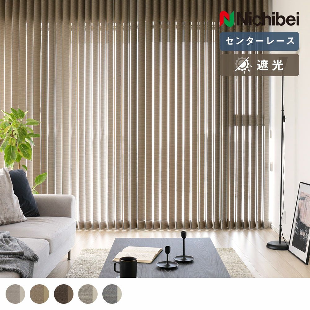 落ち着きのあるマッドな質感、絶妙なカラーリングで、大人の寛ぎ空間を叶えるバーチカルブラインド。一度見たら頭から離れない、人を惹きつける魅力のある空間に。