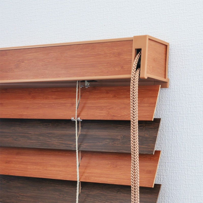 ラフな風合いとセンスの光るカラーリングのバンブーブラインド。ミディアムブラウンをベースとし、全体にカラーアクセントを入れた、かっこいい配色に仕上げています。まるで海外のカフェテラスのようなおしゃれな窓辺を演出できるブラインドです。