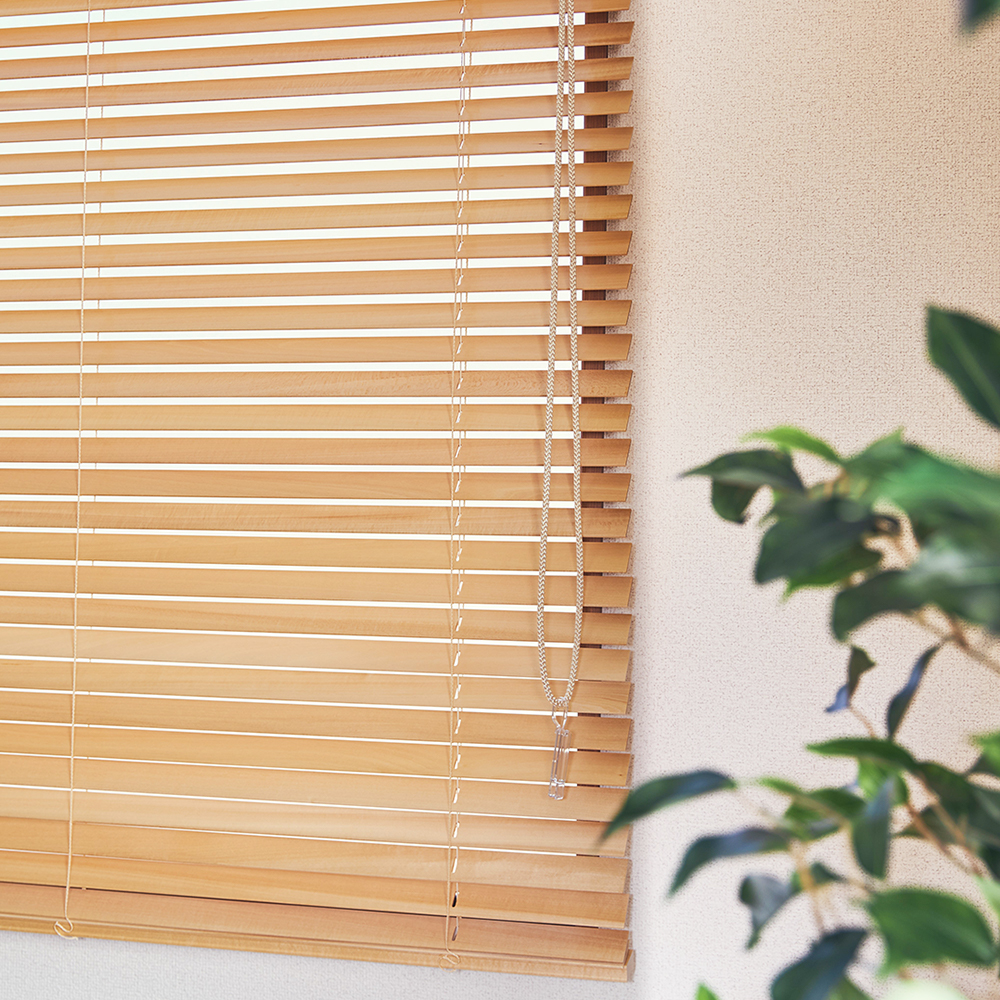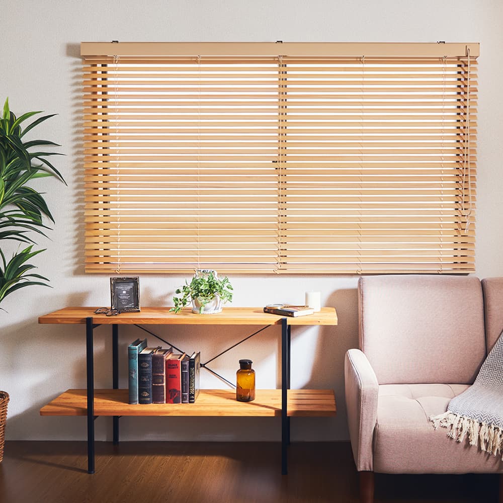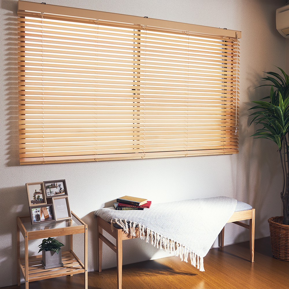 いつものカーテンをブラインドに変えてみたい…!とお考えのあなたにおすすめのウッドブラインドです。光や外からの視線を遮りながらも、室内にやさしい風を通すことができるのはブラインドならでは。通気性に優れたブラインドはカーテンとは一味違った雰囲気を楽しめます。