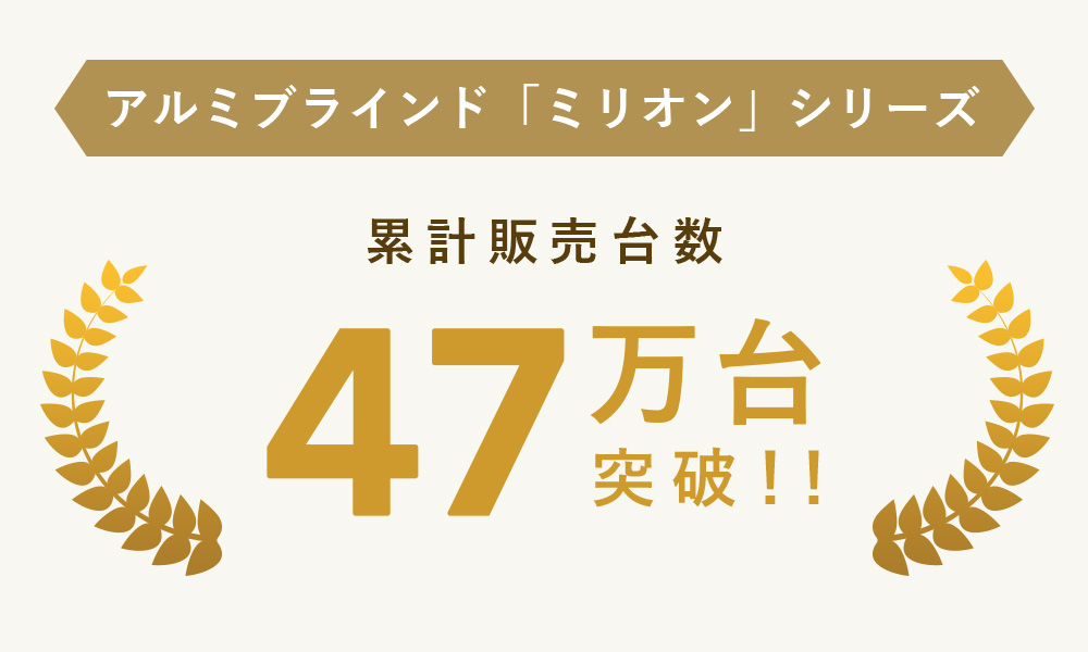 安心の販売実績を誇る「立川機工」が生産しているアルミブラインド。 【ミリオンシリーズ】累計販売台数47万台を超えるアルミブラインドをご用意しました。