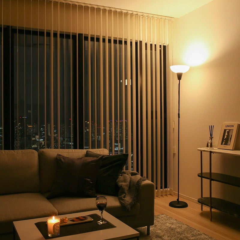 照明を落とし、夜景とフロアライトで過ごすくつろぎの時間。バーチカルブラインドの美しい直線が、スタイリッシュに空間演出し、アーバンライフにふさわしい夜を約束してくれる。