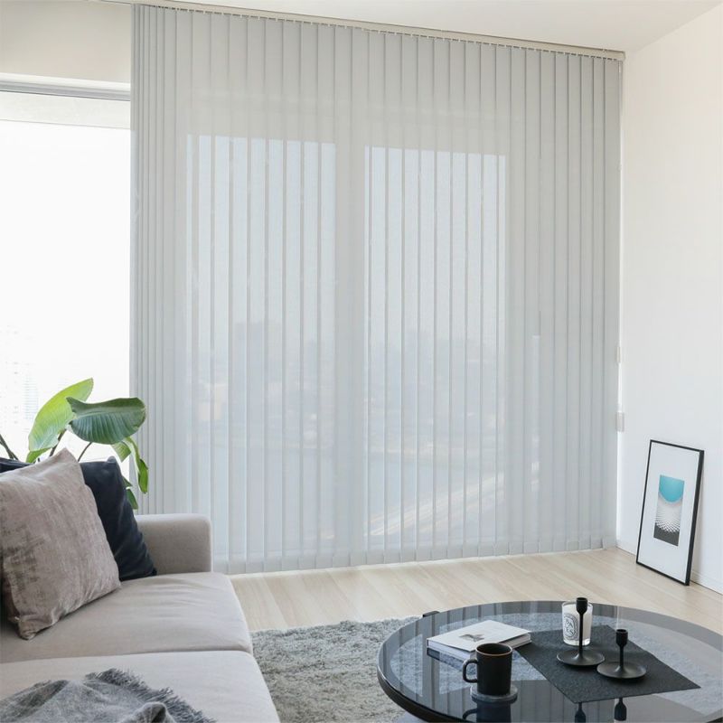 自在に開放でき、閉じたままでも景色を存分に楽しめるシースルーバーチカルブラインドは数少ない代物。窓の端から端まで景色を見渡せ、空間を広く見せる効果も。自慢の眺望を活かす、最先端な窓辺をデザインして。