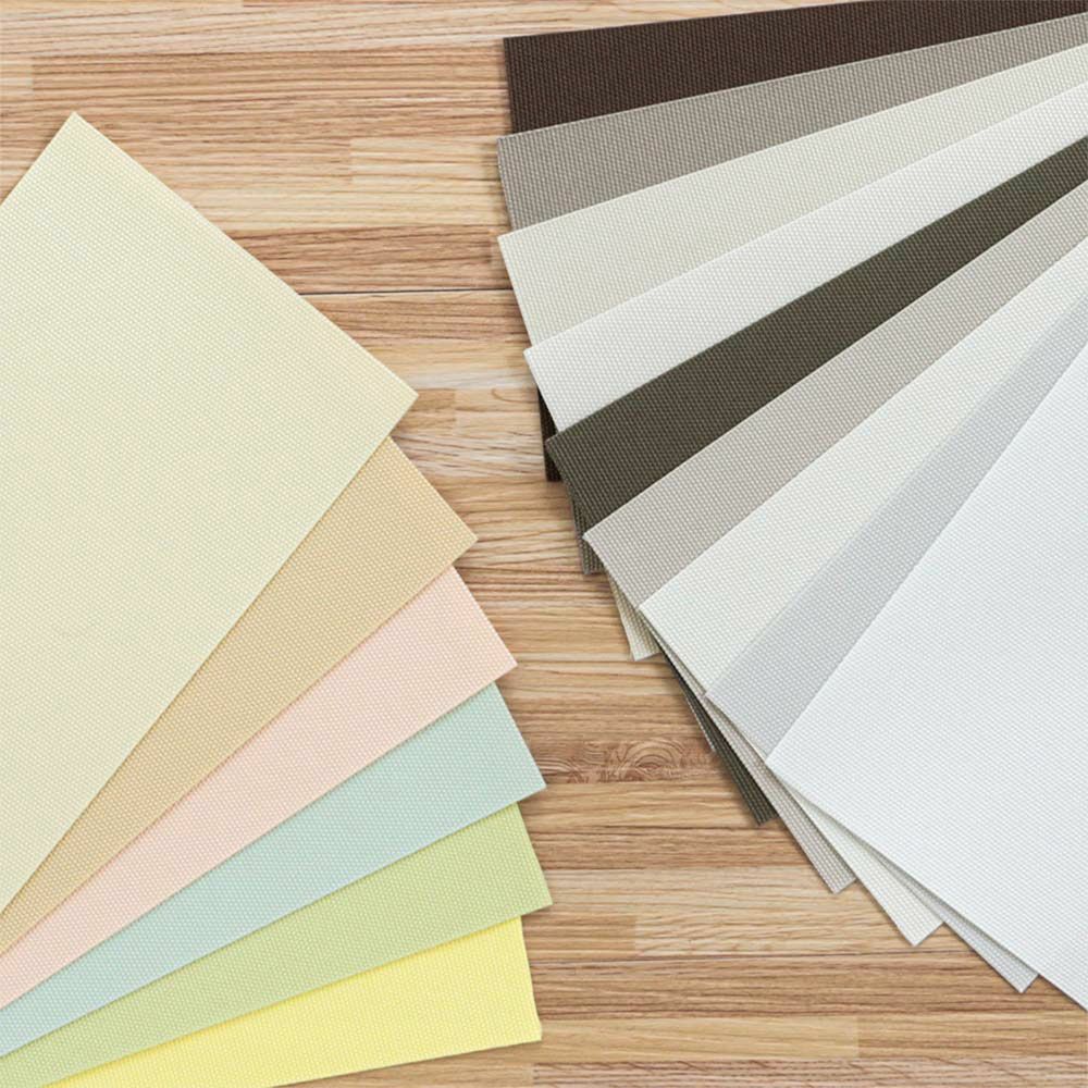 右下からホワイト、クールグレイ、オフホワイト、スモークベージュ、ダークブラウン、クラウドシルバー、クラウディサンド、ラテブラウン、ディープマホガニーシンプルなホワイト、ブラウン系から、天真爛漫なパステルカラーまで、インテリアを窓辺から引き立てるカラーバリエーションです。その場で過ごす人の「過ごしやすさ」にこだわった、優しい色味が魅力的。ほとんどのカラーがシークレットレベルの透過性なので、プライバシー確保も叶います。