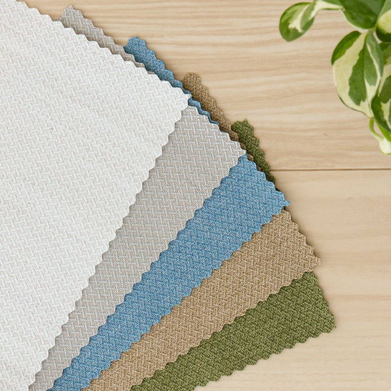 ヴィンテージ調の模様が入った、ナチュラル生地のバーチカルブラインドです。その素材感は自然素材と相性が良く、木製家具や観葉植物と調和して、空間をおしゃれに彩ってくれます。 また、透過性を抑えながらもほどよく光を取り込んでくれるので、プライバシーを保ちつつ、明るい空間で過ごせます。