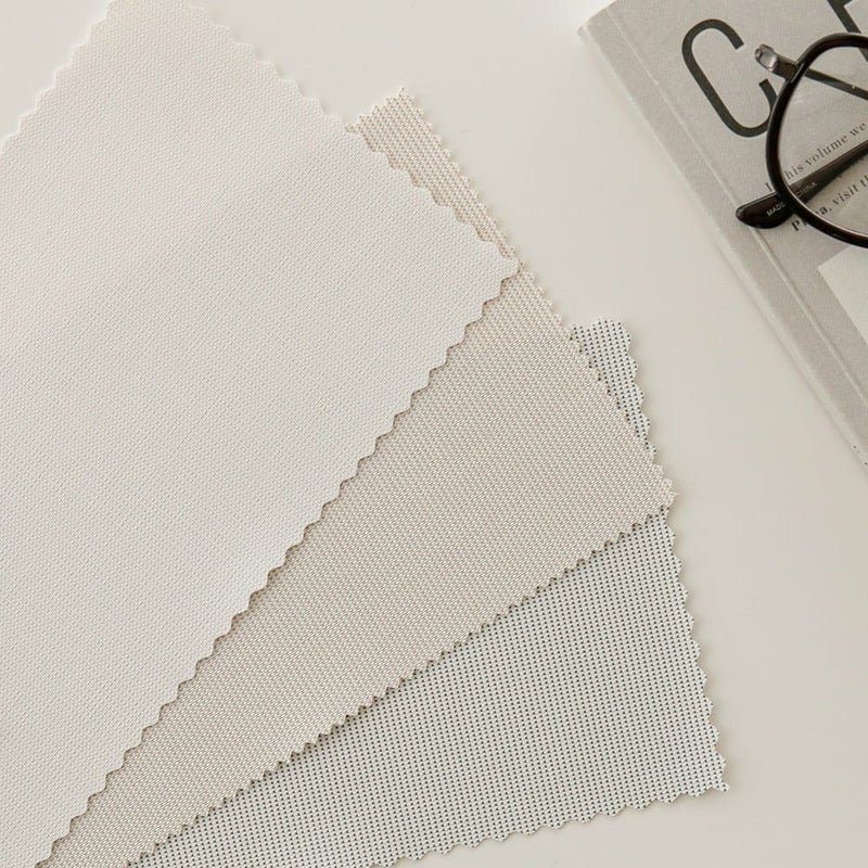 オフィスやパブリックスペースにおすすめのプレーンなバーチカルブラインドです。ポリエステルとポリ塩化ビニルを使用し、汚れにも強く丈夫な生地なので、楽に管理をすることができます。また透け感もあるので、昼間は陽を取り込めて、程よい明るさを保てます。