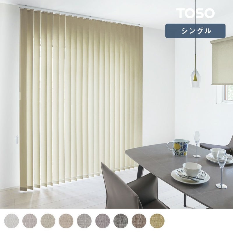 上品な雰囲気のバーチカルブラインド「クラリッサ」 主張しすぎない絶妙なニュアンスカラーと、少し光沢感のある生地感が、ワンランク上の上質なインテリアを叶えてくれます。