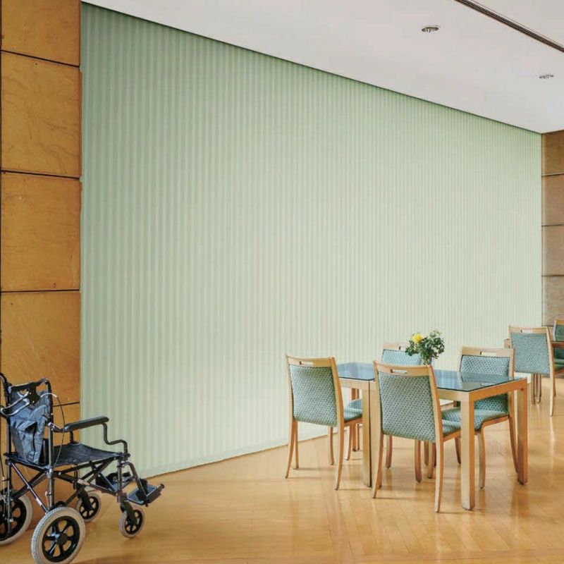 一定の認証基準と試験をクリアした、SEK制菌性能を備えたバーチカルブラインド「プールス」。 医療・公共施設から住宅まで、安心してご使用いただけます。 生地の一部にリサイクルポリエステルを使用した、環境に優しいグリーン購入法適合商品です。
