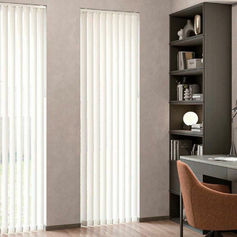 ざっくりとした織りと光沢感のある生地のバーチカルブラインド