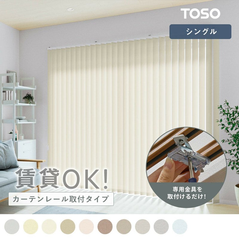 さらりと軽く、ファブリック感のあるプレーンなバーチカルブラインドです。専用金具をカーテンレールに取り付けるだけで簡単に設置でき、日射熱を約70%カット。窓からの強い日差しを効率的に遮り、夏も快適に過ごせる空間づくりを叶えます。