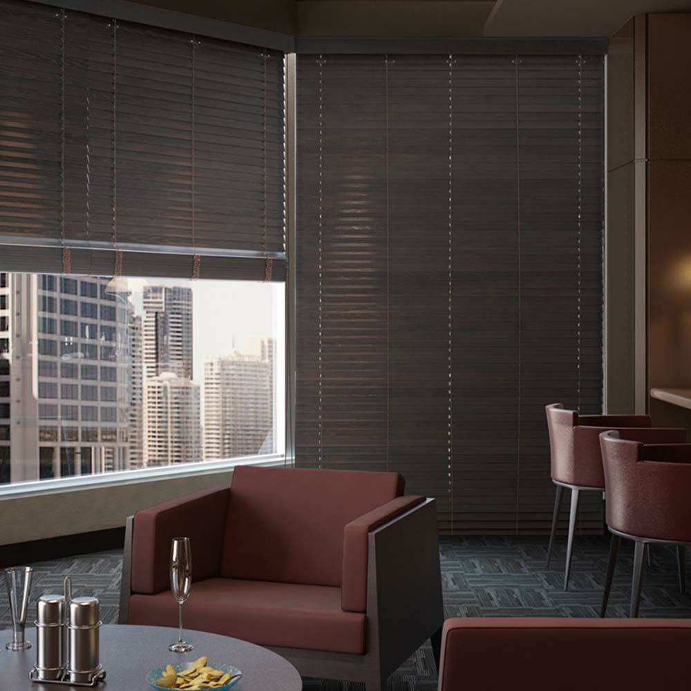 高級感ある風合いで、燃えにくい防炎の機能性を兼ね備えた注目のウッドブラインド。 防炎性品に認定されているので、高層階のマンションやホテル、商業施設等にもおすすめのブラインドです。