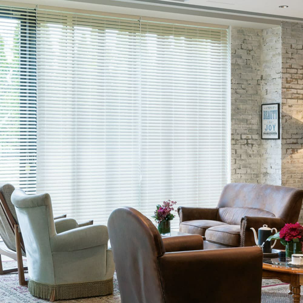 スッキリとした窓辺が空間を広く見せ、スタイリッシュな雰囲気に仕上がります。ベネウッドの「防炎」シリーズは、樹脂を使用した木調のスラット。 燃えにくい材質がいざという時にも安心の素材です。
