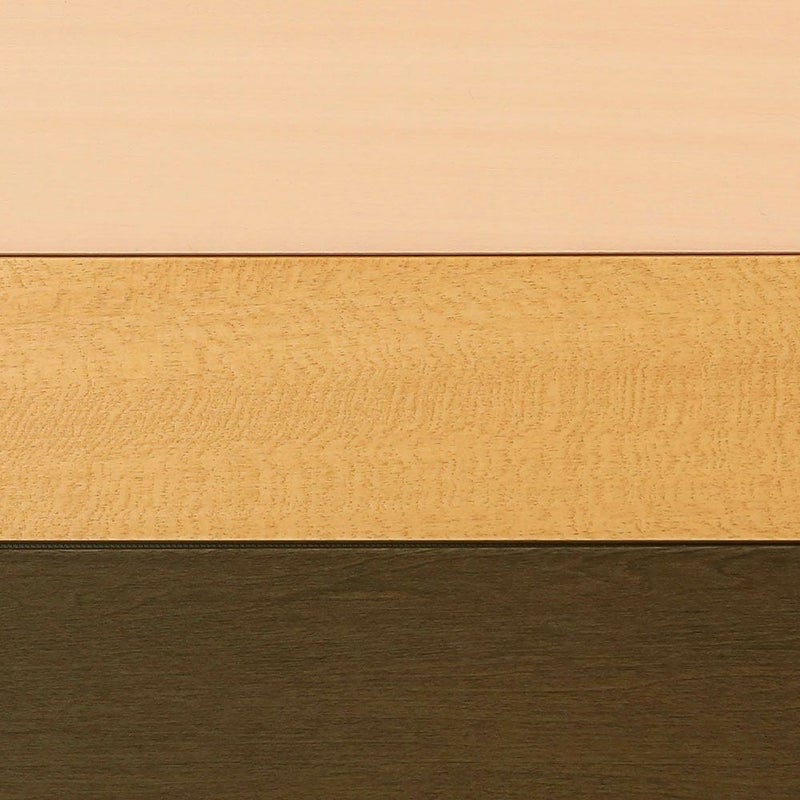 木目が見えるようにペイントを薄くほどこし、表面はツヤを抑えたオイル仕上げの天然木のようなナチュラルな雰囲気です。 絶妙なカラーハーモニーを生む、3色のブラウンが部屋を優しい色調で包み込みます。