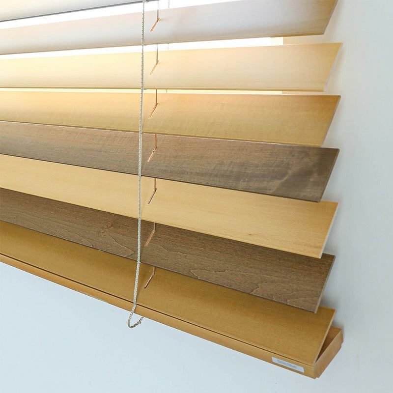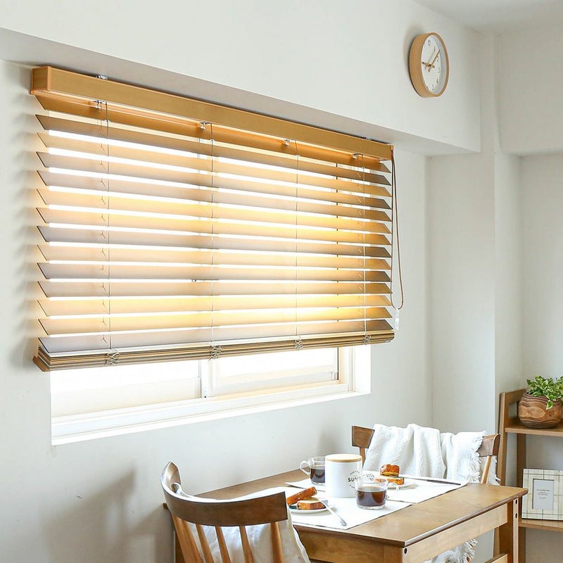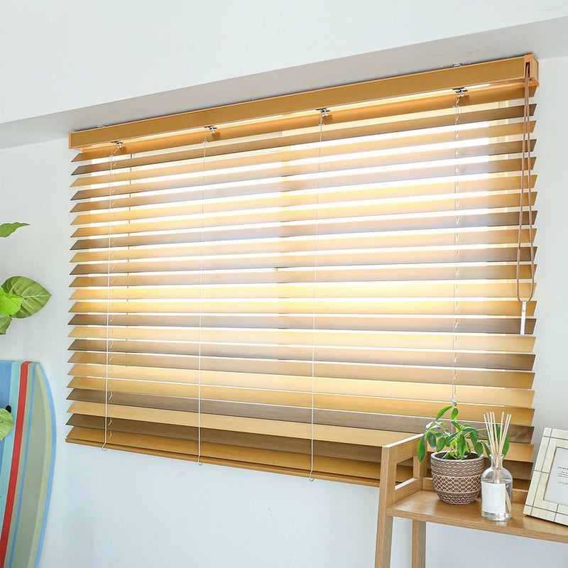 明るく広々とした海辺のリゾート地をイメージさせるようなウッドブラインドです。ナチュラルな木の風合いや色合いが、海辺の美しい風景を思わせるムードを作り出し、部屋全体にリラックスした雰囲気をもたらします。