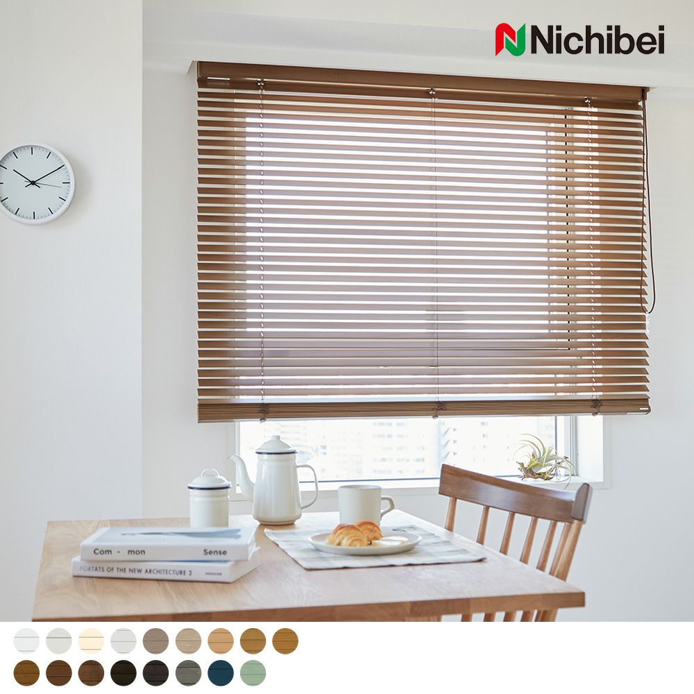 「しあわせをつくるブラインド」のキャッチフレーズで知られる、国内メーカー"ニチベイ”の木製ブラインド「クレール」。木目の美しいスラットが映す光と影が、心地よい空間を演出します。 住む人のためを考えたデザインと品質で、長く愛され続ける木製ブラインドです。