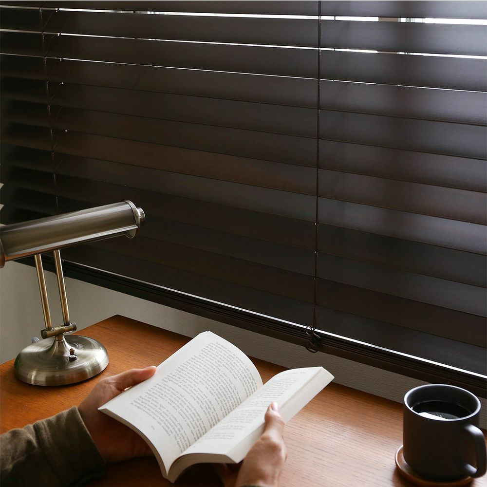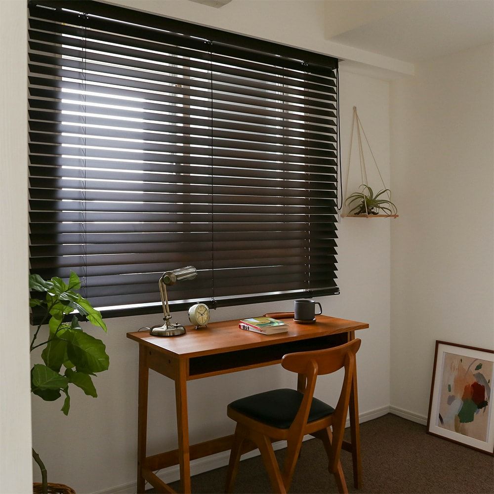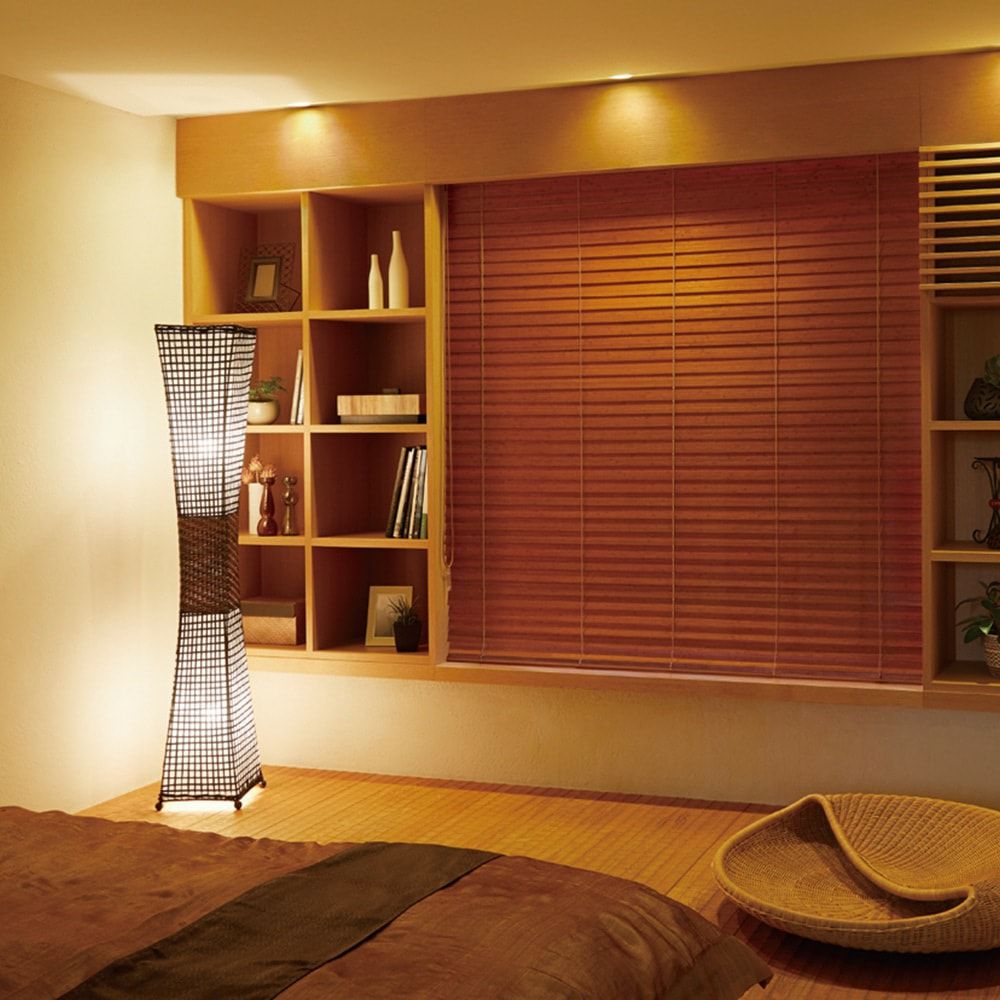天然木のブラインドが、温かみのあるぬくもりを感じられる雰囲気作りに。自然素材の窓インテリアはお部屋にリラックス効果も。更に遮蔽性も高いため、集中したいときは日差しをしっかり遮り、夜間の街灯もしっかりブロックします。