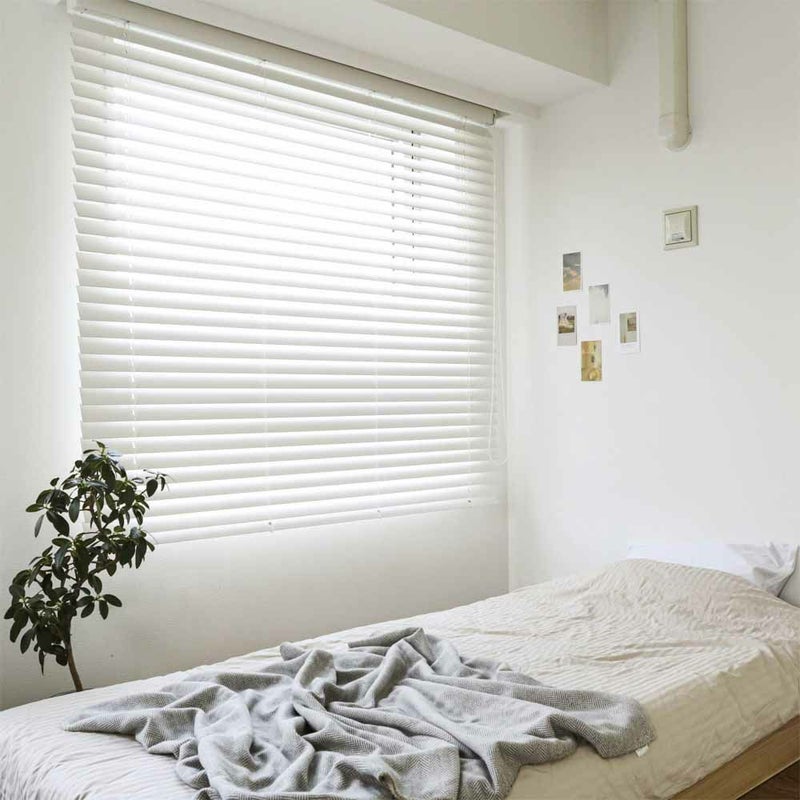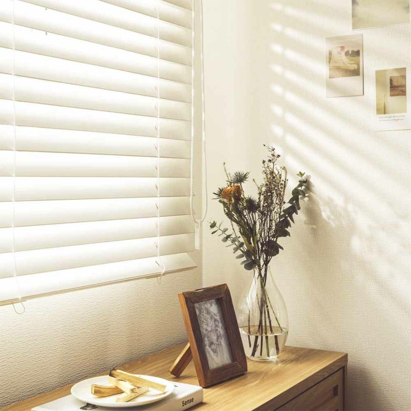 ブラインドの最大の魅力は、陽ざしを自由にコントロールできるところ。 スラットの角度によって、外からの目線を遮りながら、室内に陽ざしを取り込んでくれます。ブラインドを下したままで、スラットの隙間から気持ちのよい風が入るのもうれしいポイント。