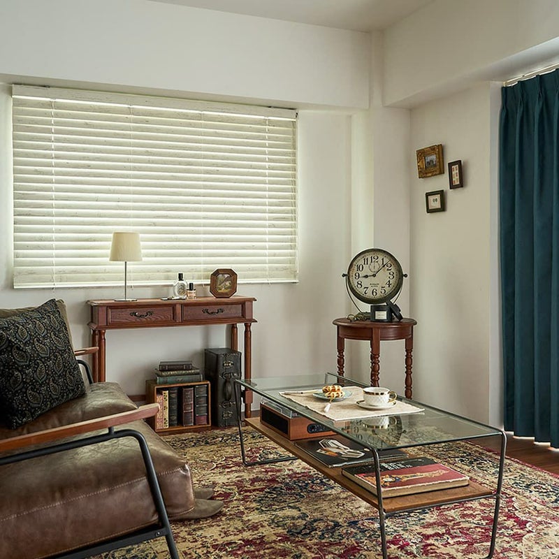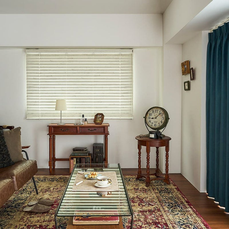 時の流れを感じさせるような、趣あるイギリスアンティーク調のウッドブラインド。木目が最も美しく見えるスラット幅や材質を厳選し、その加工工程にもこだわったウッドブラインドは、お部屋に上質な雰囲気と、洗練された窓辺を与えます。
