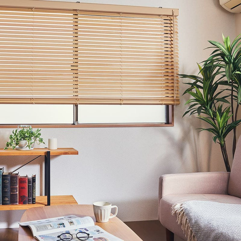 いつものカーテンをブラインドに変えてみたい…!とお考えのあなたにおすすめのウッドブラインドです。光や外からの視線を遮りながらも、室内にやさしい風を通すことができるのはブラインドならでは。通気性に優れたブラインドはカーテンとは一味違った雰囲気を楽しめます。