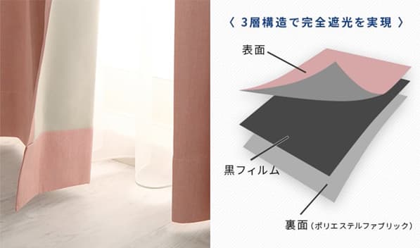 ➋生地の間に遮光フィルムを挟み込んだサンドウィッチ加工のもの