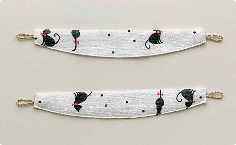 心を癒します。そんな猫好きさんにはたまらない、可愛いリボンを付けた黒猫の姿が描かれたカーテン。 -