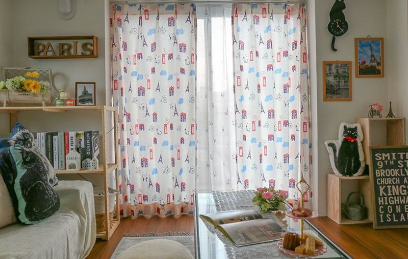 同じ柄のカーテンを合わせると、そこはまるでパリのお洒落なお部屋のうよう。