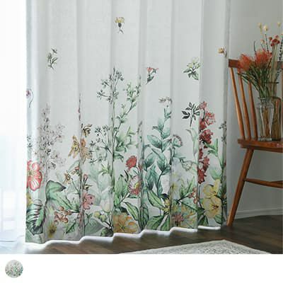 繊細な水彩画の様なタッチで写実的に描いたフラワーモチーフは、重なり合って様々なニュアンスを作り出します。まるでアートのような美しさを持つカーテンです。