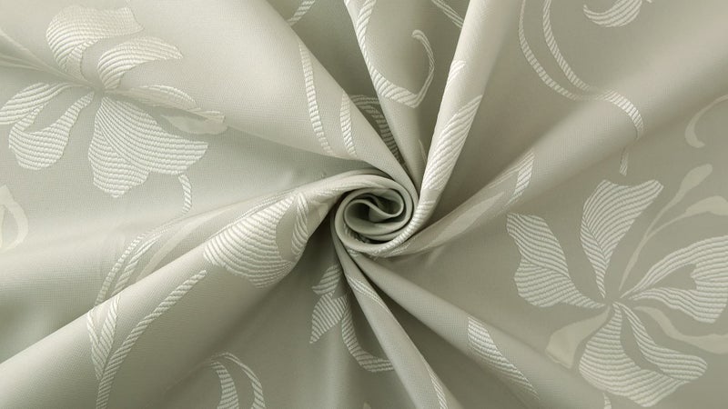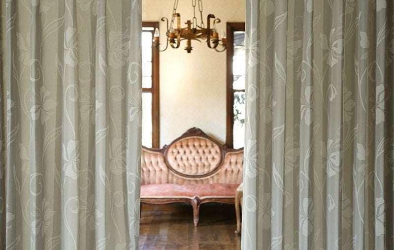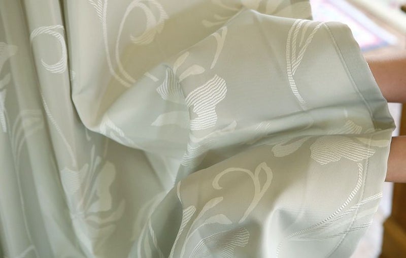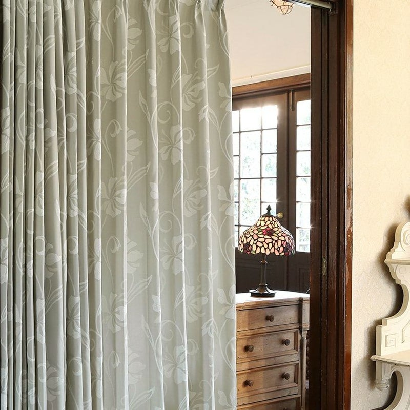 シンプルな色使いに、伸びやかな花姿を織り上げたジャガードカーテン。