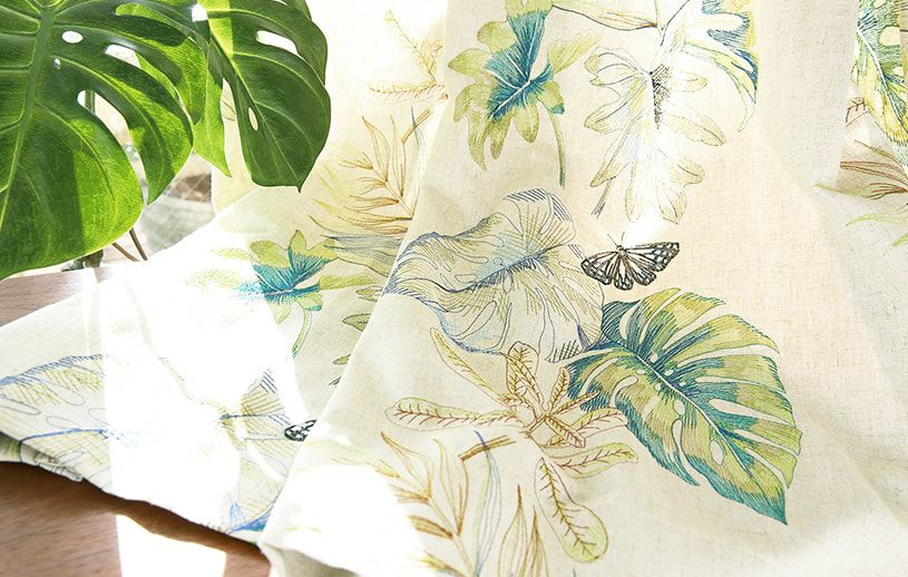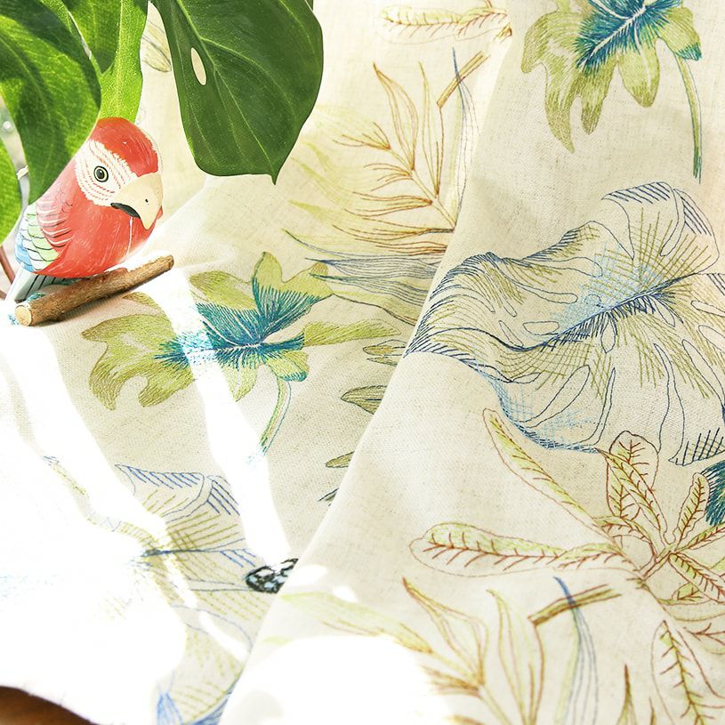そこに鮮やかな刺繍をあしらったエンブロイダリーカーテンをプラスすれば、ハワイの風を感じる特別な窓辺に。