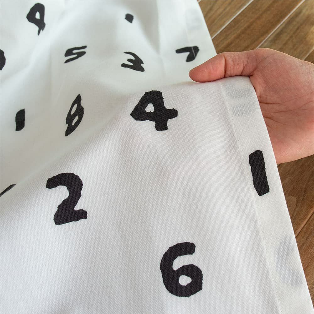 毎日開け閉めするカーテンは、手触りも重要。コットンライクのやわらかな風合いと手描きの数字がやさしいファブリック。長く愛用できる、そんな信頼のおける生地感です。