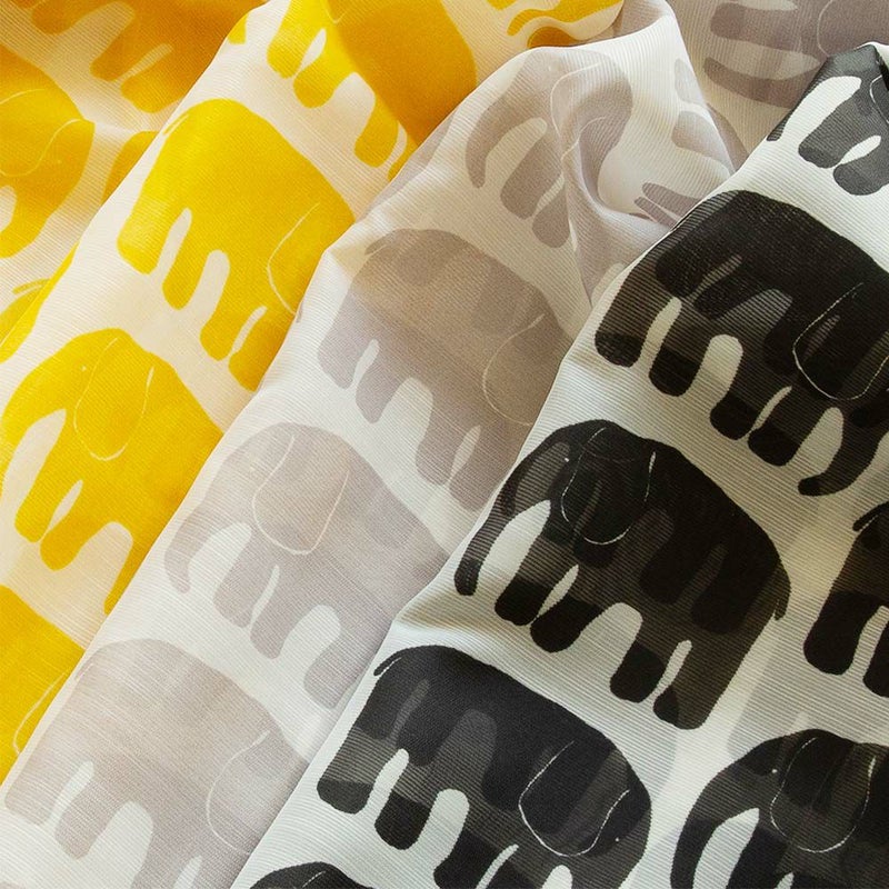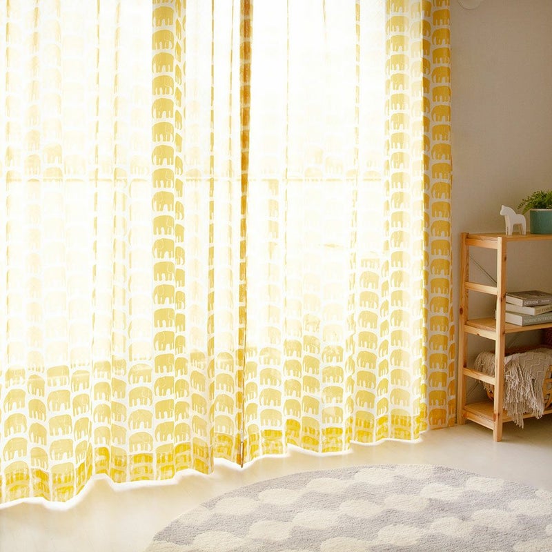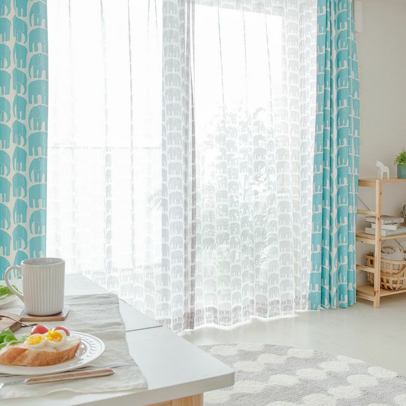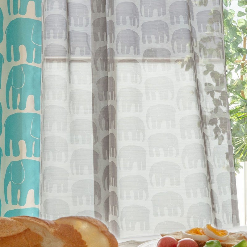 かわいいゾウのデザインが人気の「エレファンティ」のカラフルなレースカーテン。エレファンティのドレープカーテンとぜひコーディネートしてみてくださいね。