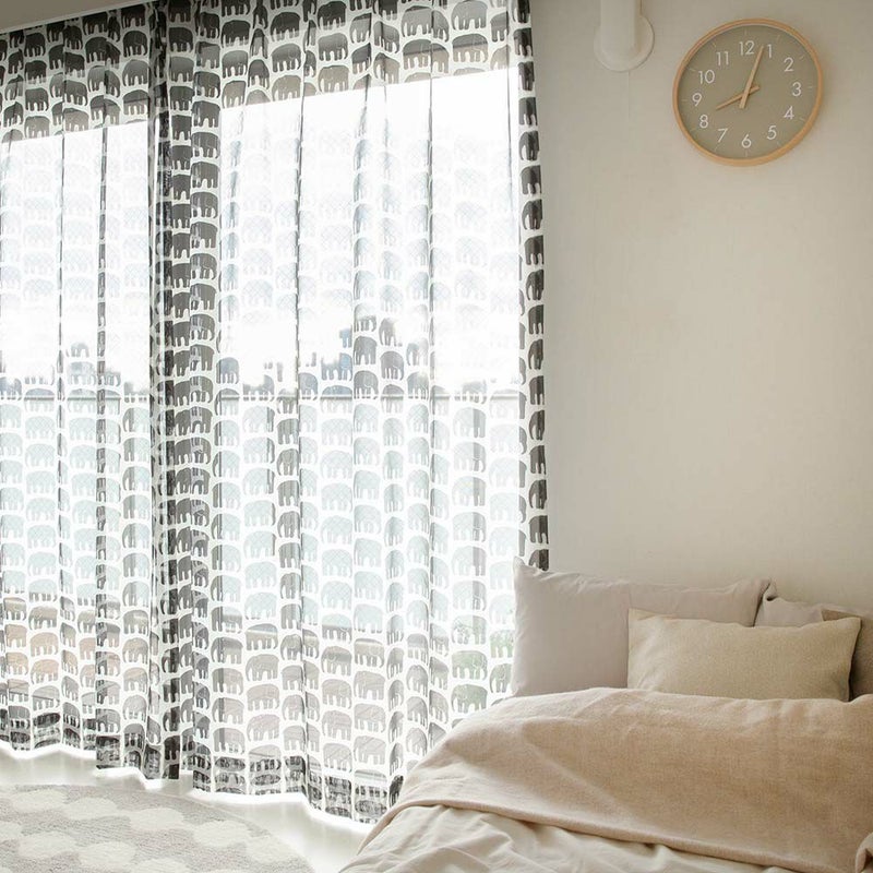 大人だって、エレファンティが好き!ブラックのレースカーテンなら、大人可愛い寝室の窓辺が完成します。