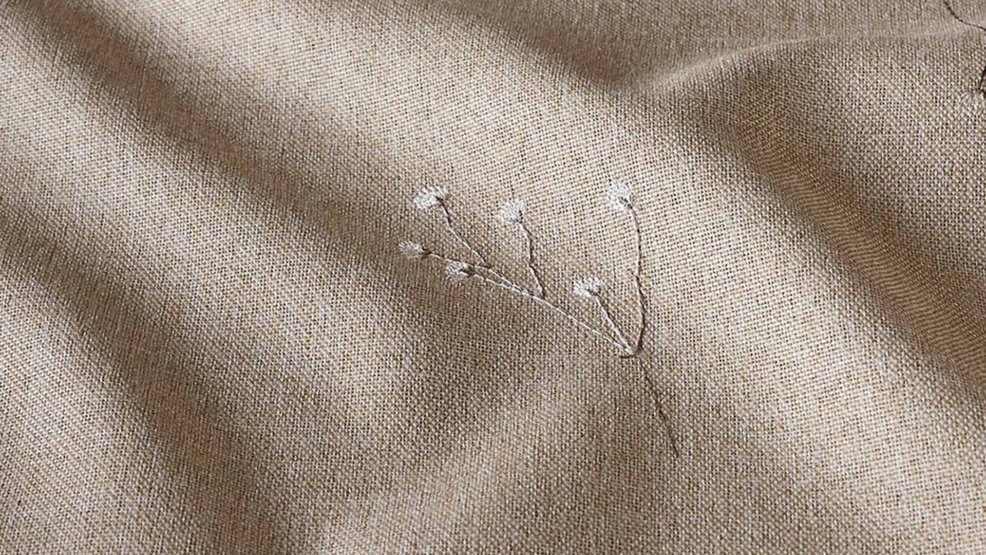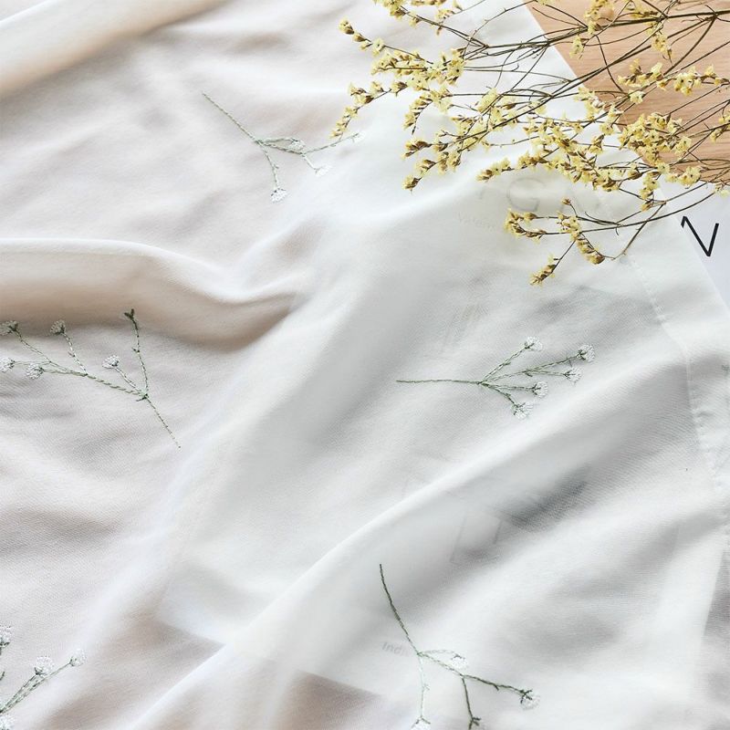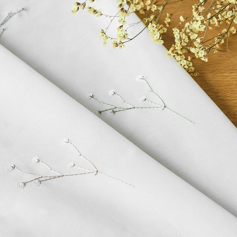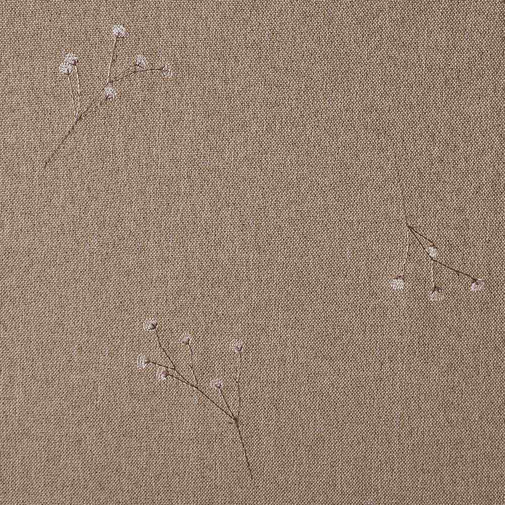 かすみ草の刺繍がカーテン全面にたっぷりと刺繍されたデザイン。細い線で描かれた、可愛らしくさりげないデザインは見れば見るほど好きになる。