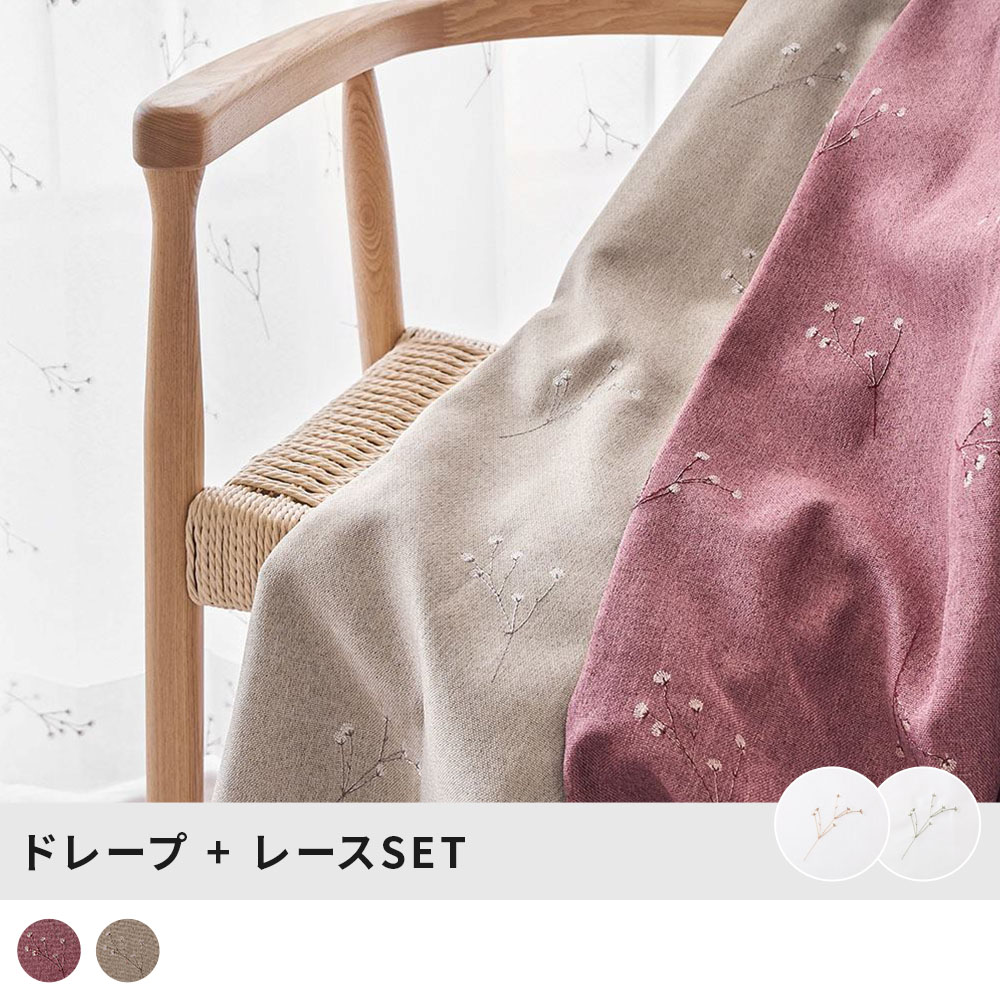 ふわりとしたやさしい雰囲気が、乙女心をくすぐる「かすみ草」。その繊細で可憐な印象をドレープカーテンに 刺繍で表現しました。儚げな印象を感じつつも、刺繍ならではのクラフト感と相まって、窓辺をほっこりとした優しい雰囲気にしてくれます。更に暮らしに丁度良い2級遮光。そして、繊細な刺繍が可愛らしいレースカーテンがセットに。ナチュラルでありながらも可憐でかわいらしいカーテンセットを、窓辺で存分にお楽しみください♪