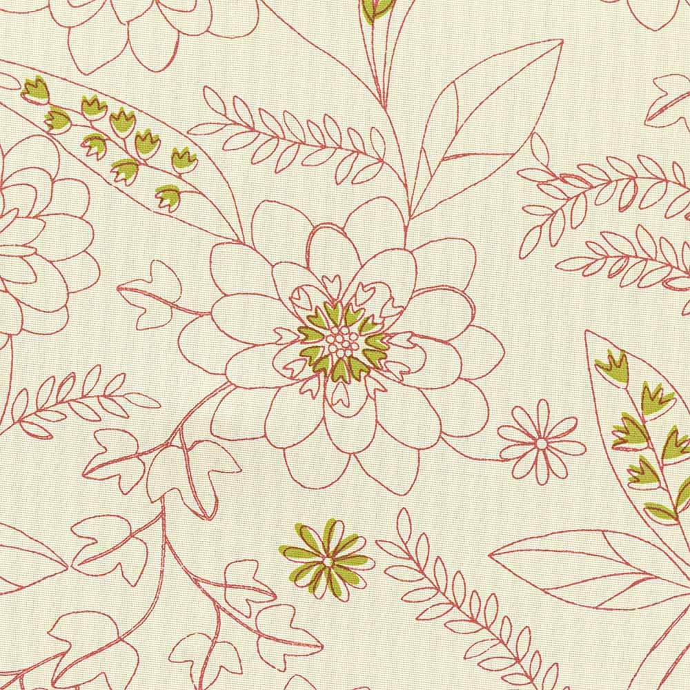 線で描く手書き風の花柄デザインに、アクセントカラーでカントリー調に仕上げた2級遮光カーテン。適度な遮光性で暮らしをサポートしながら、明るくほっこりするお部屋にしてくれる1枚です。