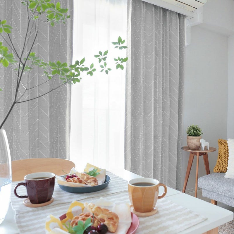 人気の北欧インテリアにぴったりな、モダンな遮光カーテン。手書きのような味のあるホワイトラインがすっきりとした印象を与え、デザインを引き締めてくれます。