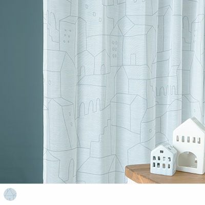 シンプルでおしゃれでとってもかわいい!北欧の街並みをラインで描いたレースカーテン。暮らしにちょっとした遊び心を感じさせる、素敵なデザインです。