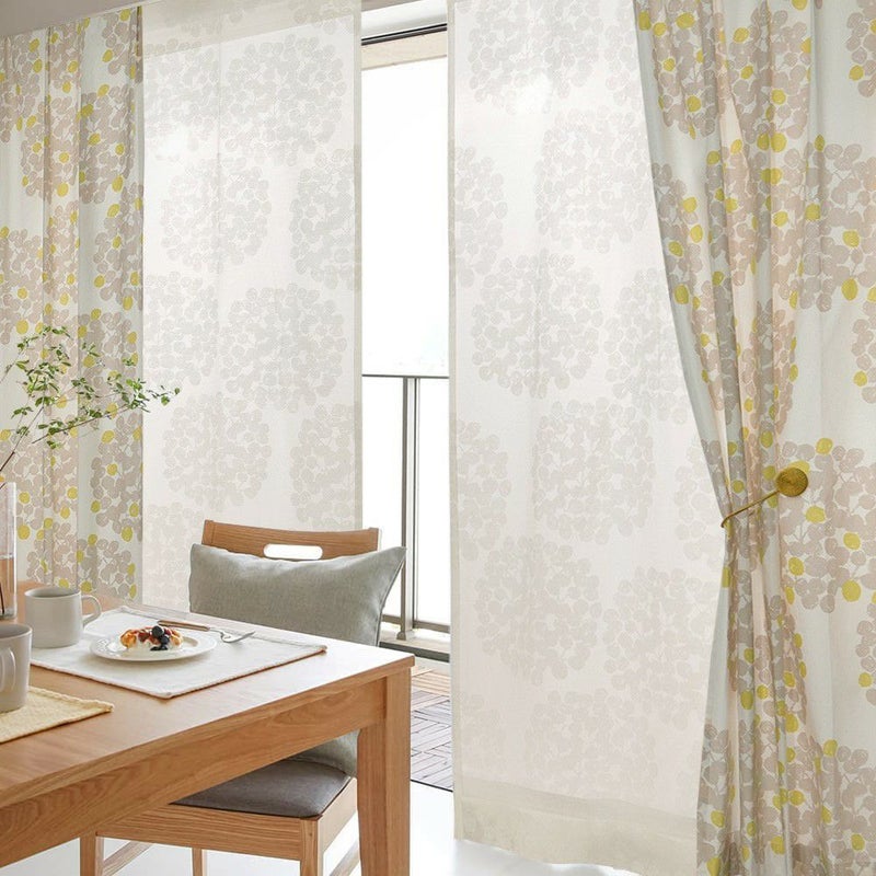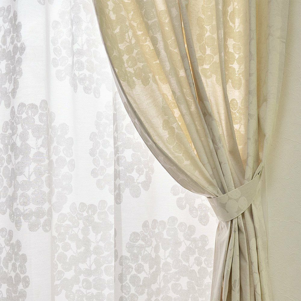 <フロート>の世界観を存分に楽しむなら、同柄のレース<レースフロート>との組み合わせがおすすめ。やさしいタッチのアジサイ柄をレースにのせたデザインが、光をふんわりと通してお部屋に自然なニュアンスを添えます。ドレープと合わせることで生まれる調和と統一感は、ナチュラルな空間づくりにぴったり。見た目だけでなく、光の演出まで楽しめる組み合わせです。