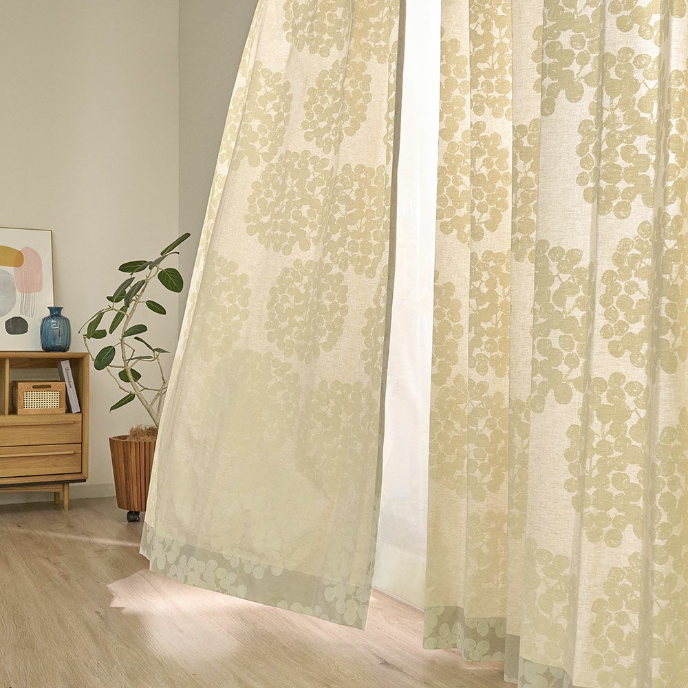 おおらかに描かれたアジサイ模様。さらりとした天然素材の風合い。そして、窓辺に差し込むやわらかな光。<フロート>は、そんな一つひとつの“好き”を丁寧にかたちにしたカーテンです。肩の力を抜いて過ごしたい休日の朝も、少しだけ落ち込んだ夜も。ふと視線を向けた先に、心がふわっとゆるむ景色があるだけで、暮らしはちょっと優しくなれる気がします。自分らしく、心地よく、自然体でいられる空間に。そんな毎日をそっと支えてくれる<フロート>と、心地よい窓辺の暮らしを始めてみませんか?
